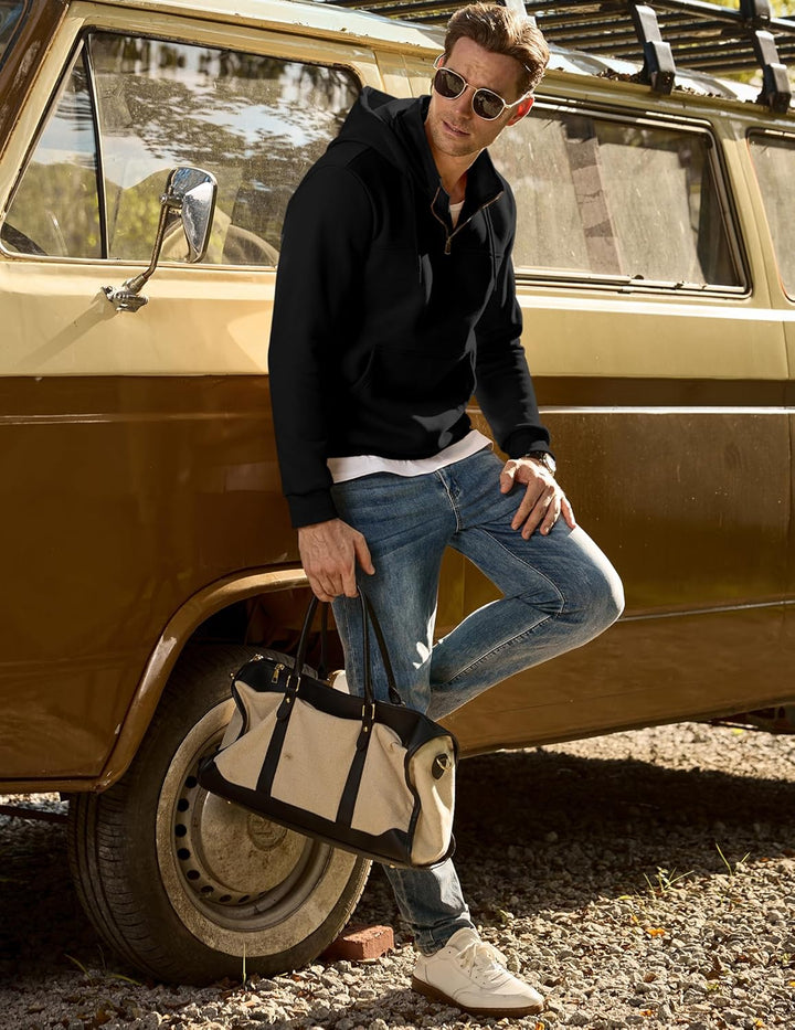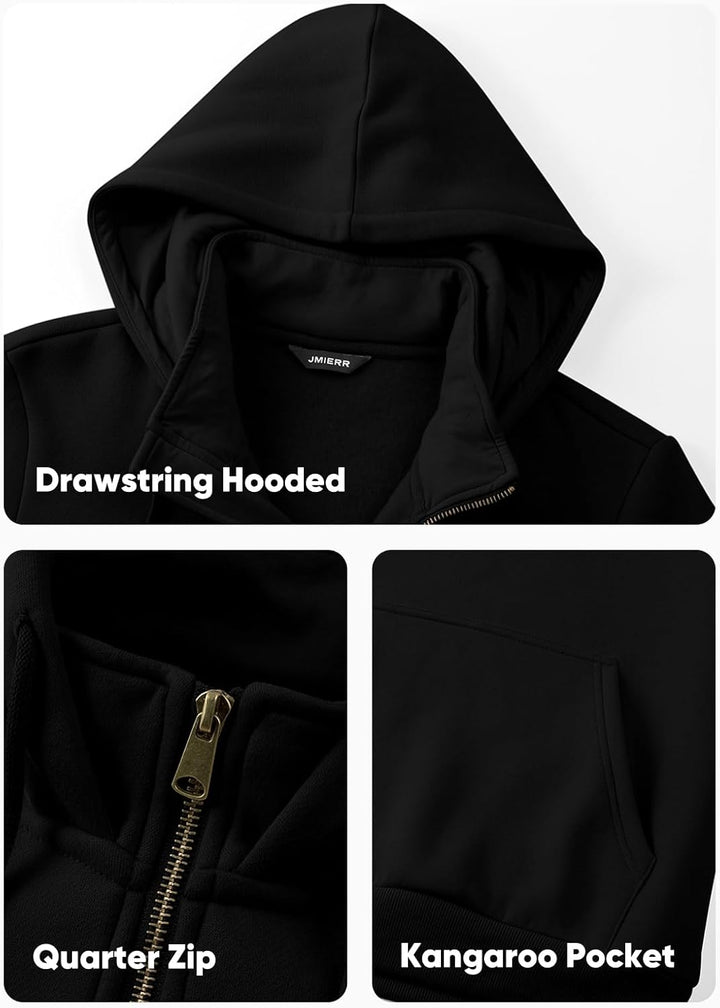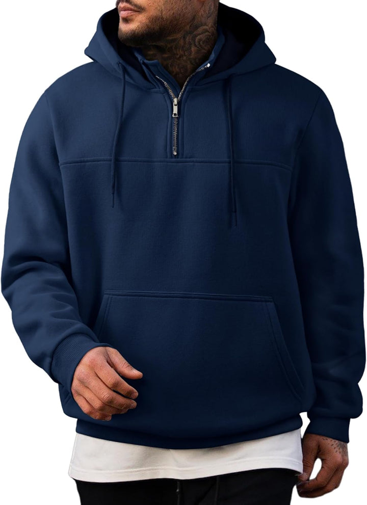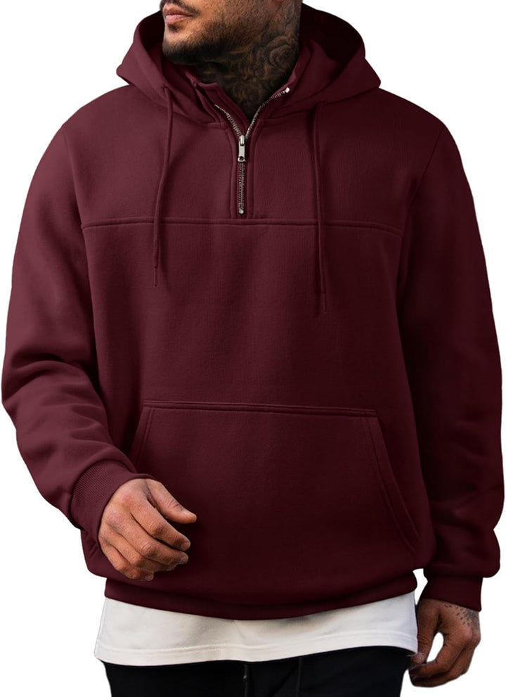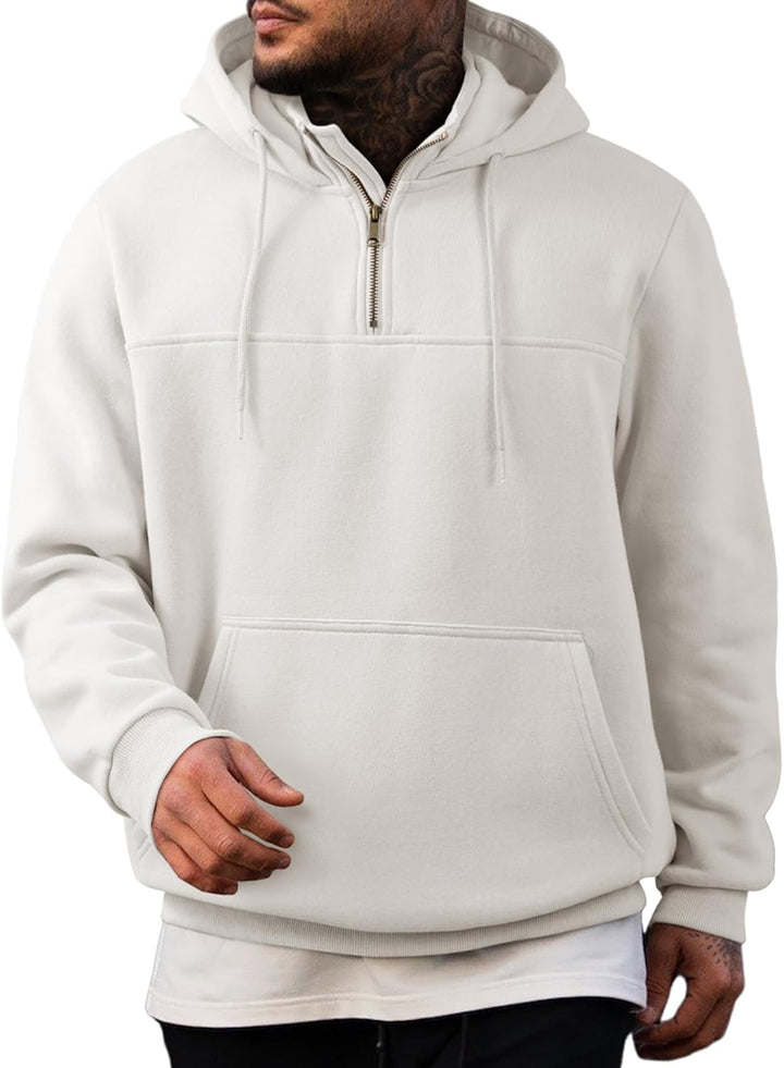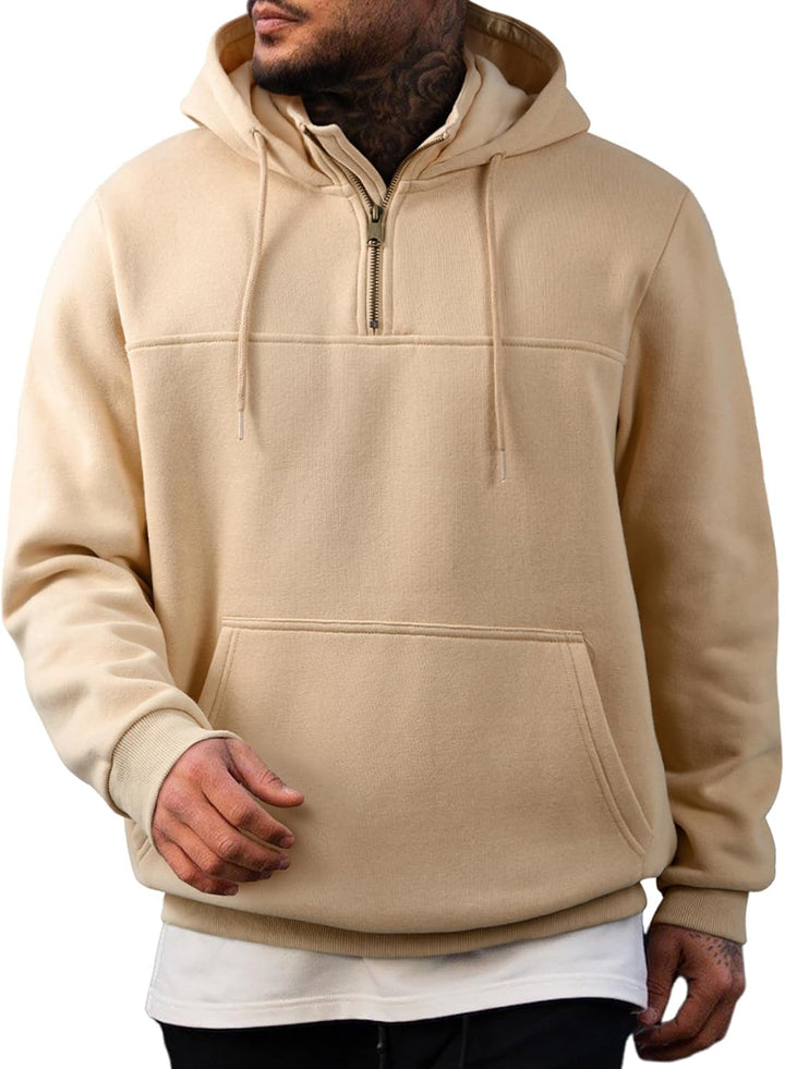 JMIERR Mens Casual Cotton Hoodies Drawstring Quarter Zip Pullover Sweatshirts