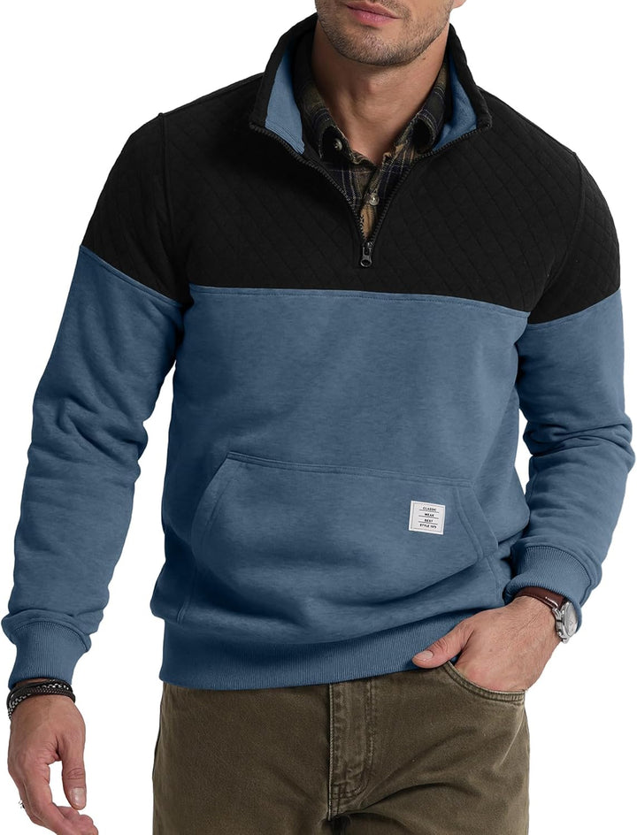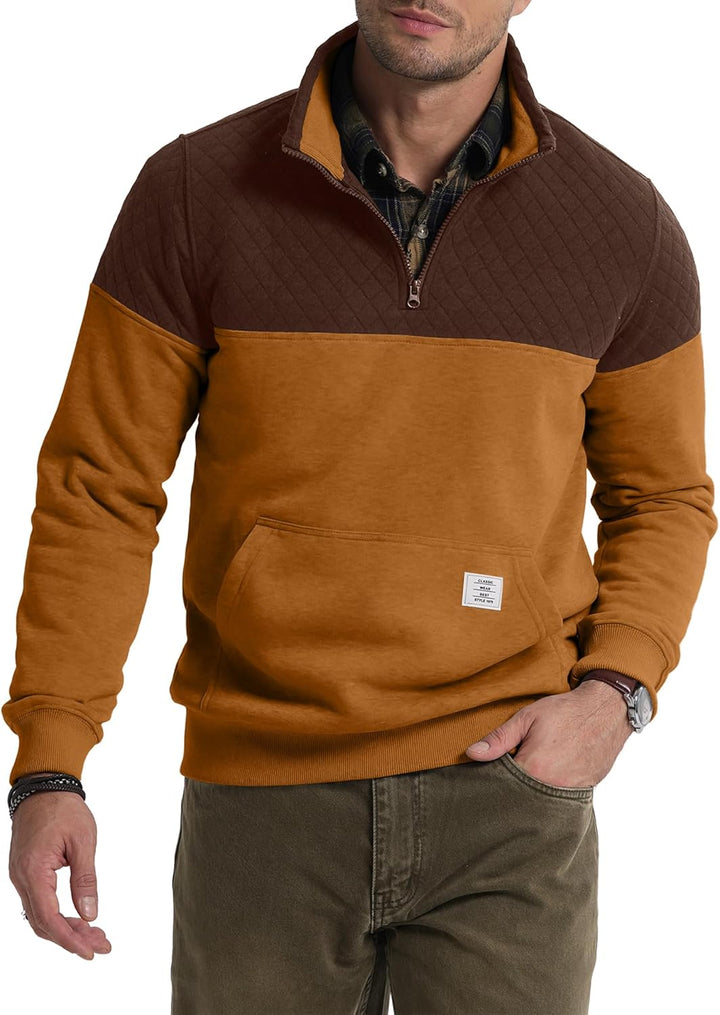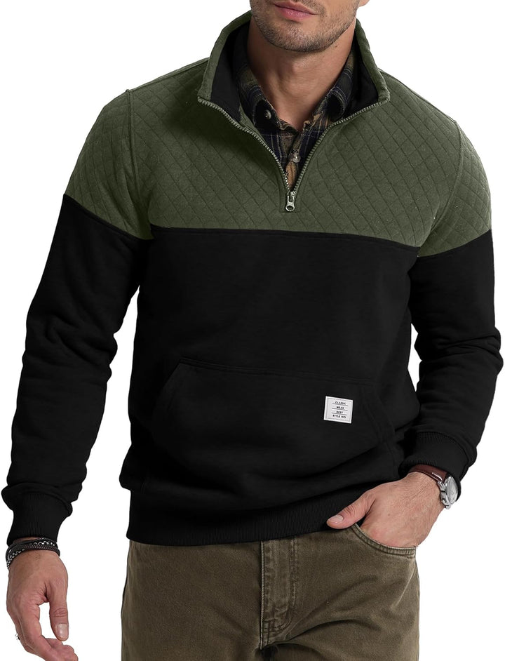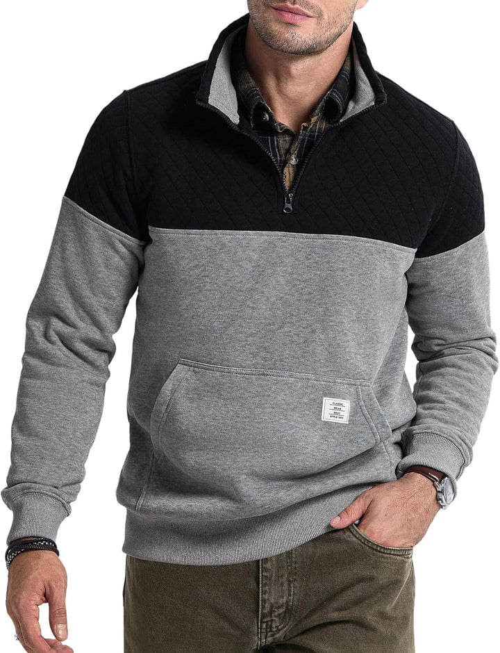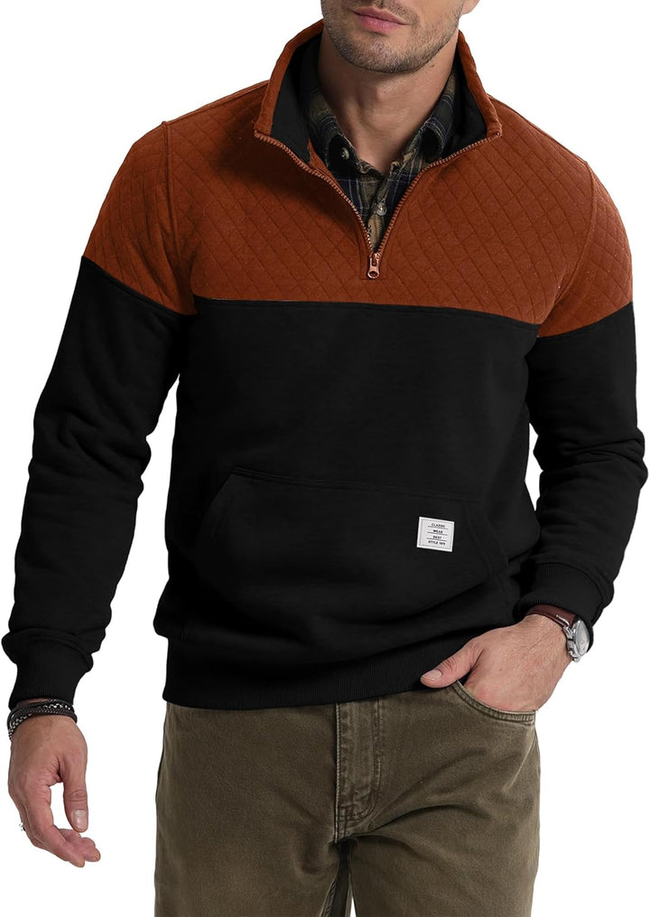 JMIERR Men's Quarter Zip Pullover Quilted Sweatshirt Pullover Long Sleeve Stand Collar Sweater Color Block Sweatshirt