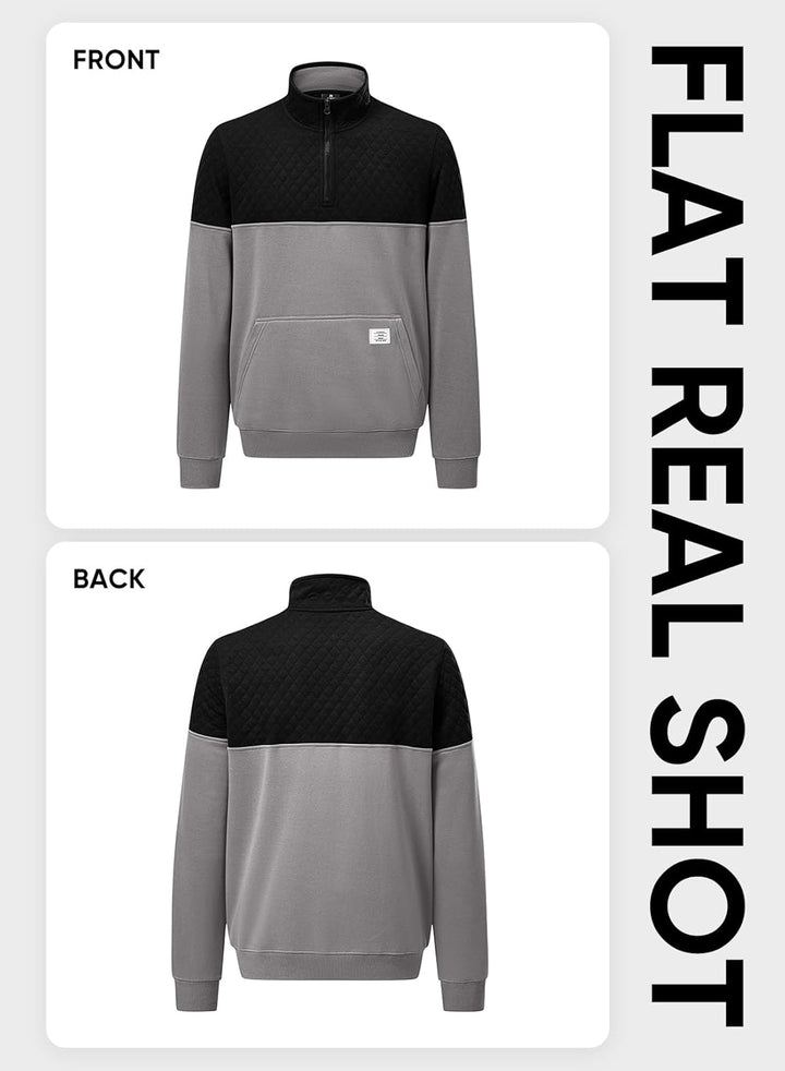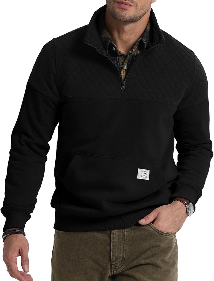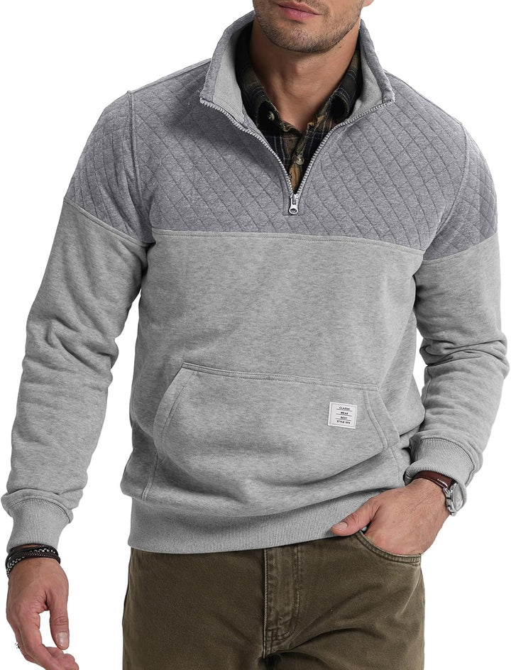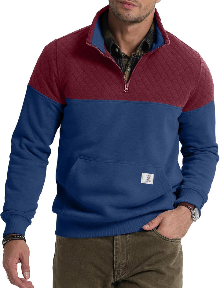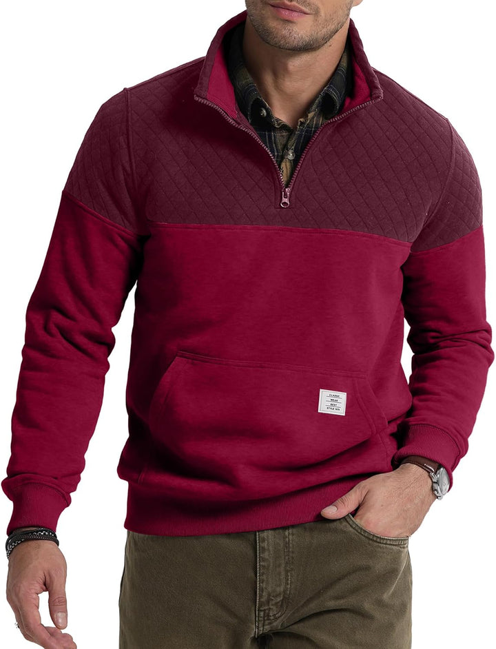 JMIERR Men's Quarter Zip Pullover Quilted Sweatshirt Pullover Long Sleeve Stand Collar Sweater Color Block Sweatshirt
