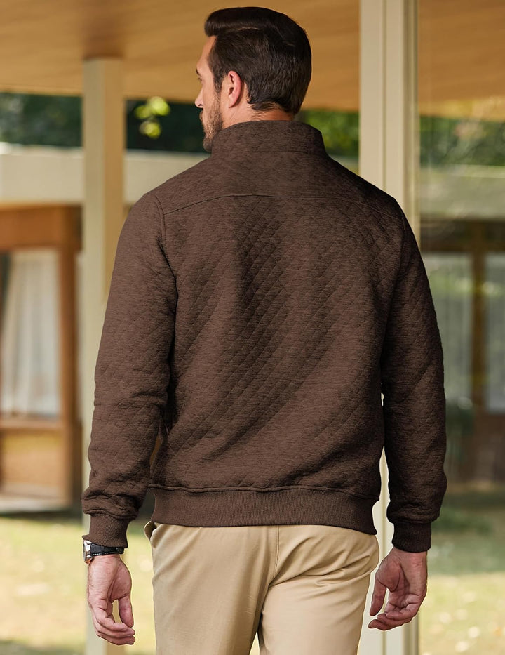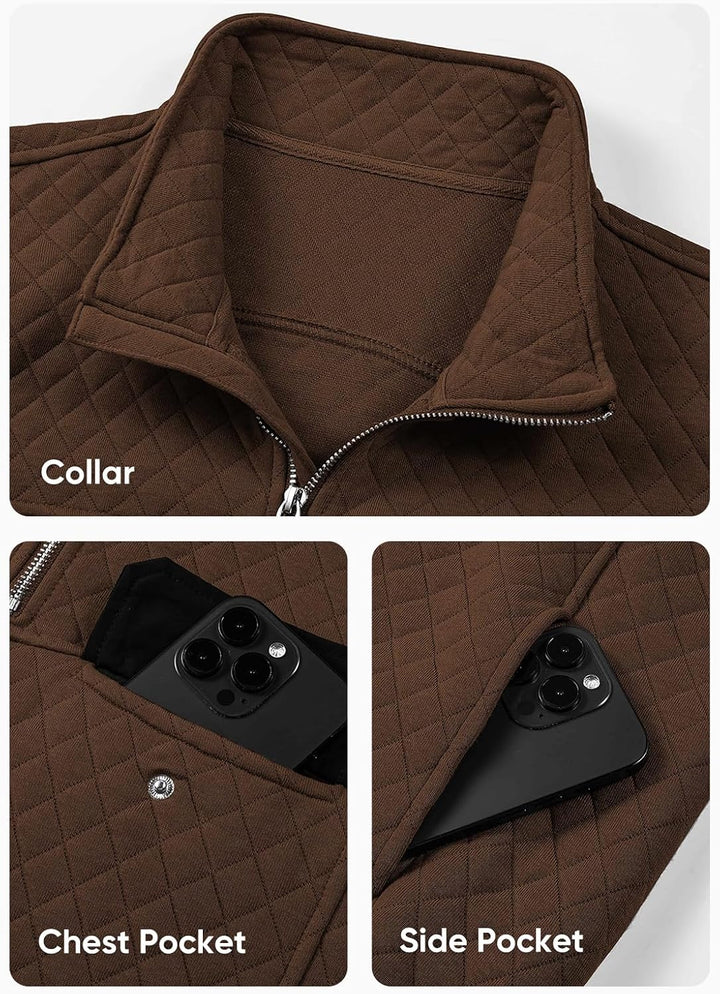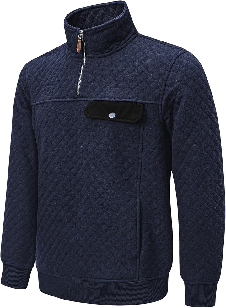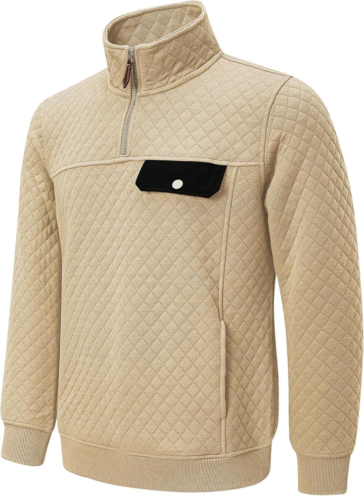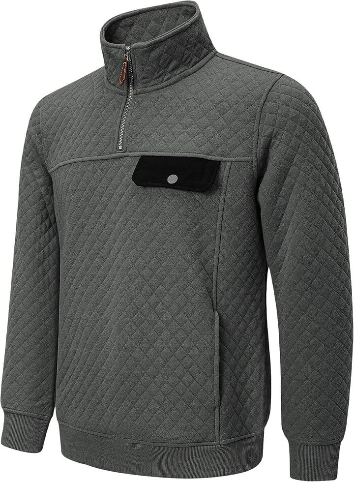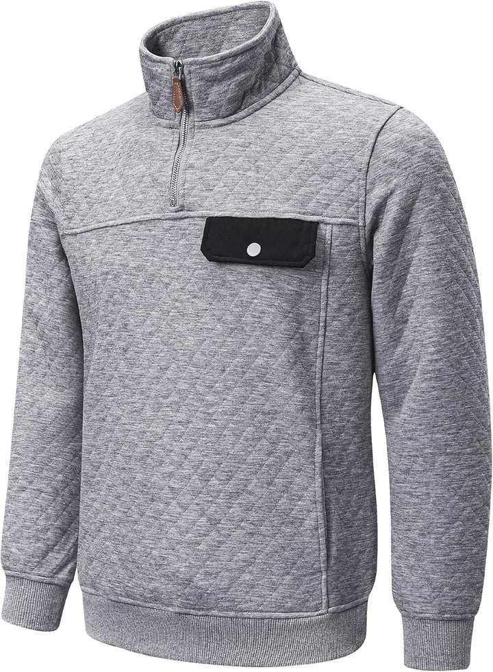 JMIERR Men's Quilted Sweatshirt Casual Long Sleeve Outdoor Stand Collar Quarter-Zip Pullover Sweatshirts