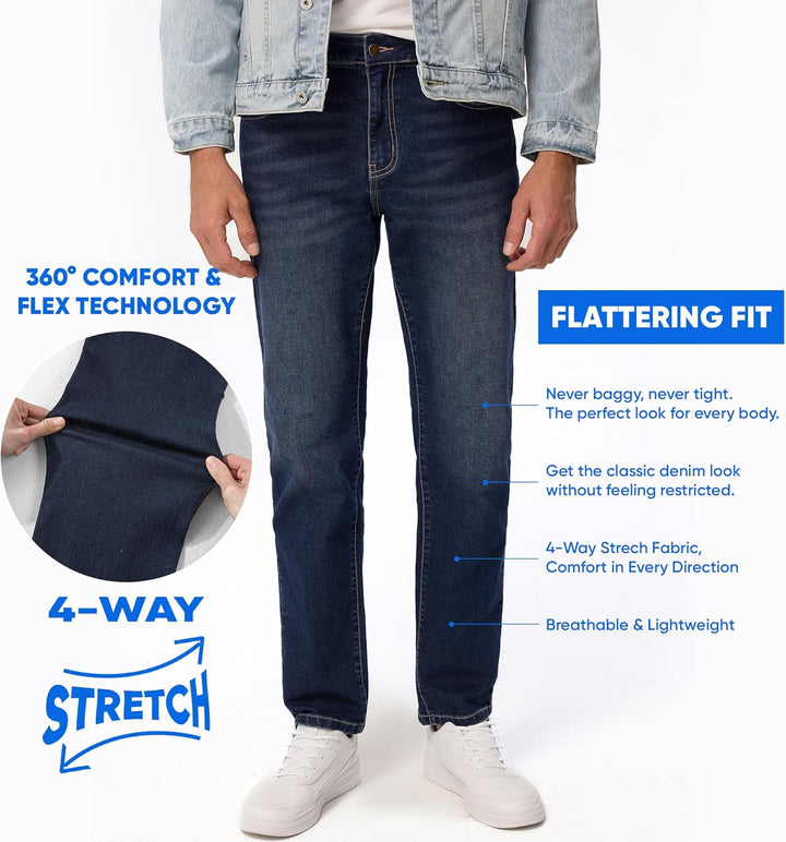JMIERR Men's Stretch Jeans Regular Fit Straight Leg Casual Denim Pants